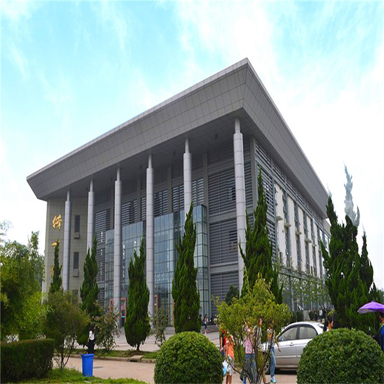 冲孔铝单板加工工艺性好,可加工成平面、弧形面和球面等各种复杂的形状。首先要根据不同的零件制定合理的加工工艺。对于简单的零件直接采取下料、切形的方式,对于异形复杂零件需要采用雕刻机或数冲加工,对于尺寸及外观精度要求特别高的零件则需要采用数铣加工。为了减少不同工序间周转划伤,针对不同方式加工的零件,在下料时就进行分类,这样既能提高 效率又能保证加工质量。很多异形零件不能一次成型,需要拆分成几件折弯后再组焊在一起,还有的超大分格的板幅,受原材料尺寸限制,也需要拆分后拼接组焊。由于形状复杂,面积较大,焊道较长,且材质较薄,焊接应力会引起板面扭曲、波浪变形,焊缝处凸凹不平,严重影响了外饰效果。针对组焊的零件,要注意合理拆分零件,避免长焊道,若出现长焊道时,优先采用点焊或断续焊的方式连接;如果 满焊,则考虑增加焊道筋或采取水冷的焊接方式,控制板面变形。冲孔铝单板外饰板常年承受风压,为了保证其强度和抗风压的能力,在铝单板背面要合理布置加强筋,加强筋一般垂直于长边均布,用电焊螺栓连接,要合理调整焊接电流的大小,既要保证电焊螺栓的强度,又不能电流过大,在板正面引起栽钉印痕,电焊螺栓焊接后要进行拉拔试验,验证焊接强度,防止栽钉脱落。对于2.5MM以下厚度的铝板,由于铝板较薄,电焊螺栓在板正面易引起栽钉印痕,这时加强筋的安装则考虑采用粘接的方式,避免因栽钉印痕造成外饰效果不良。